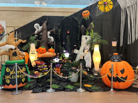 本館・宿泊館、たんぽぽのロビーが期間限定でハロウィンの飾りつけに♪