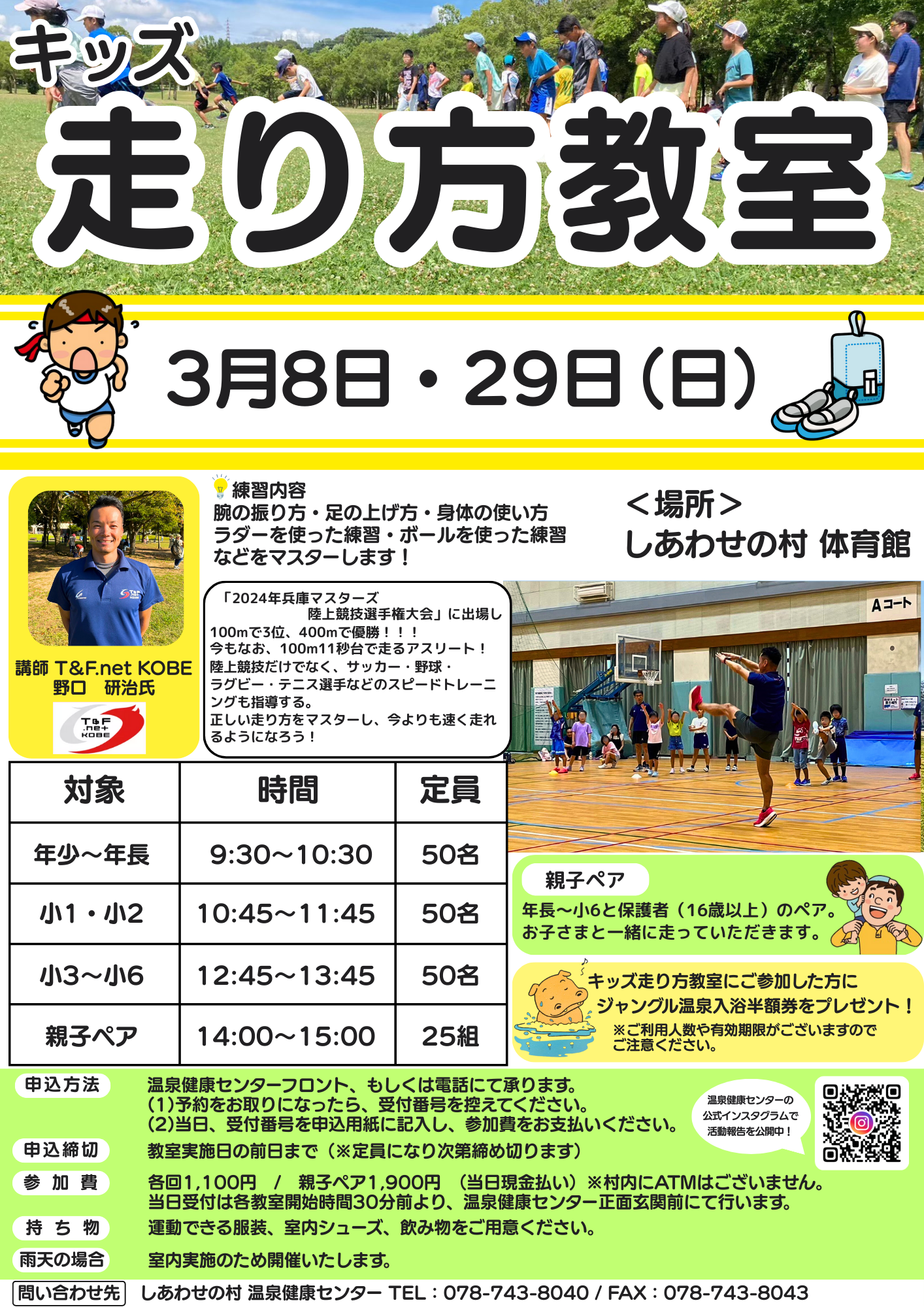 | 持ち物 | 動きやすい服装、飲み物、汗拭きタオル、帽子 |