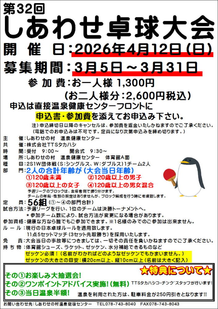 【追加募集】第32回しあわせ卓球大会