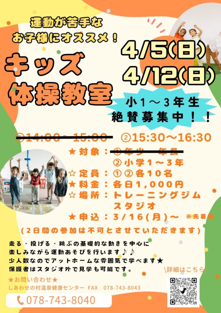①14:00~15:00(年少~年長) ※定員に達したため募集を打ち切らせて頂きます。