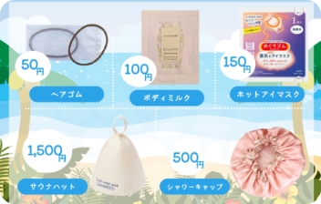 脱衣場には、リターン式100円ロッカー、ドライヤーを常備しています。 - フロントにてアメニティを販売しています。