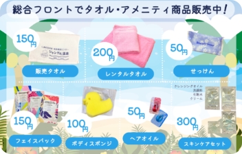 - 貸しタオル・貸しバスタオルは、セットで、200円です。