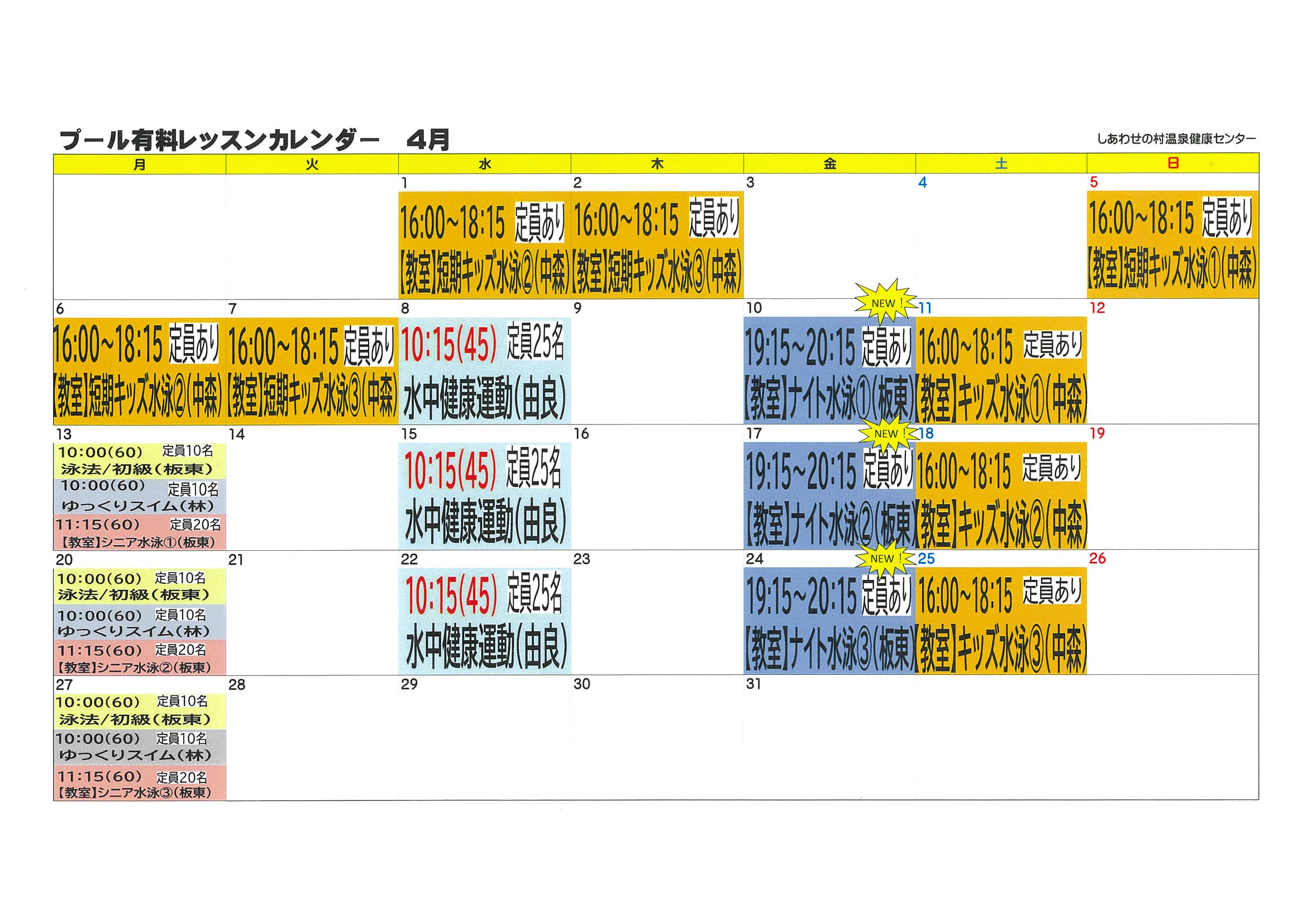 ※レッスン前日までにお電話もしくは温泉健康センターフロントにて直接お申し込みください