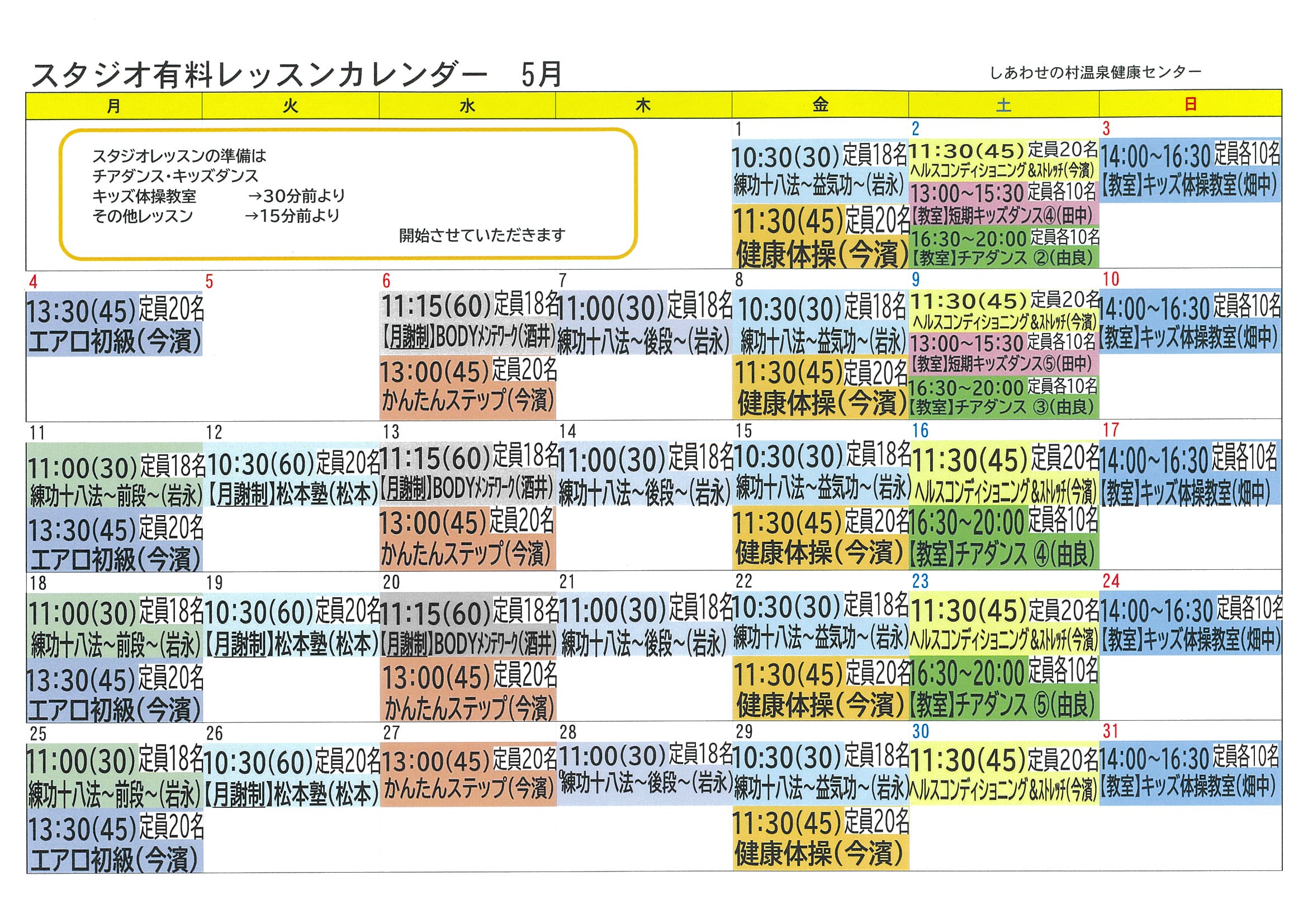 2026年【5月度】スタジオレッスンのご案内