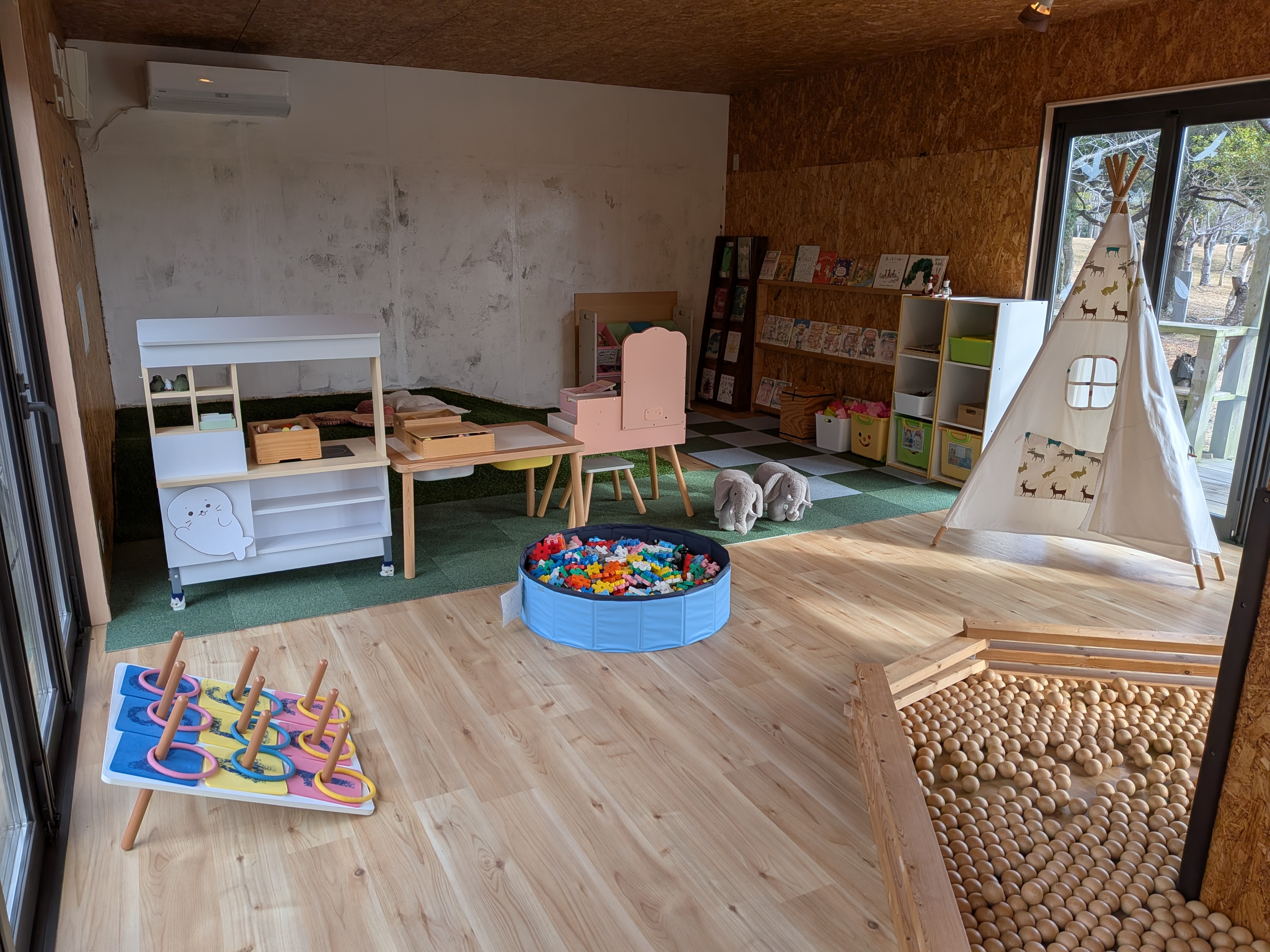 5歳未満のお子様でも、木に触れて楽しめる室内空間もあります。