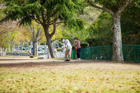 グラウンドゴルフは、専用の木製クラブで、直径6センチメートルのボールを打ち、ホールポストにホールインするまでの打数を競うゲームです。 ルールは簡単で、どなたでも手軽に楽しむことができる、スポーツです。