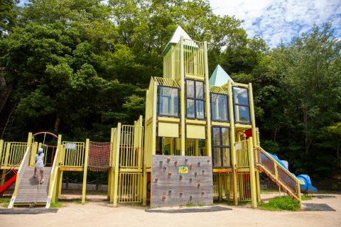 - ロングスライダー、総合遊具、山の砦、冒険イカダなど
