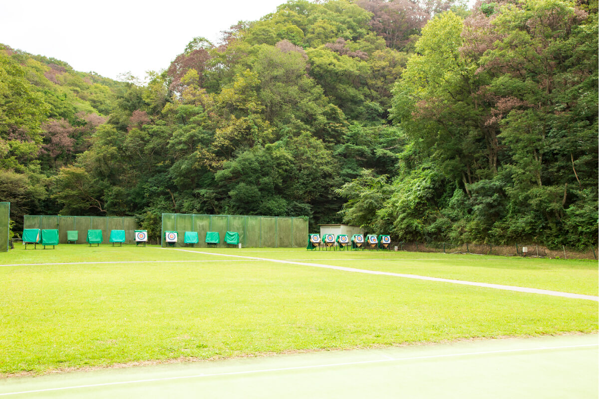 - アーチェリーの射場(レンジ)は、ノシバの芝舗装です。